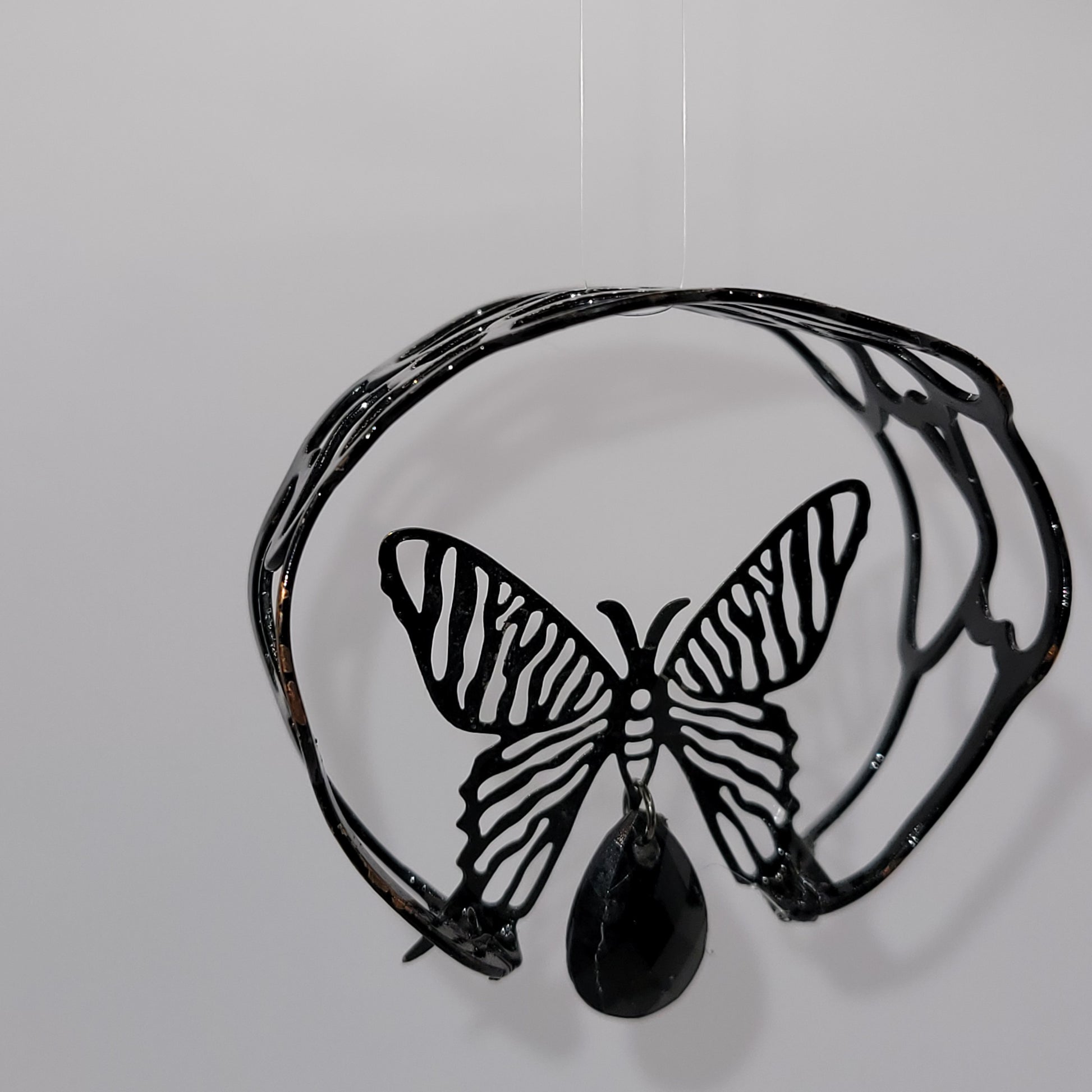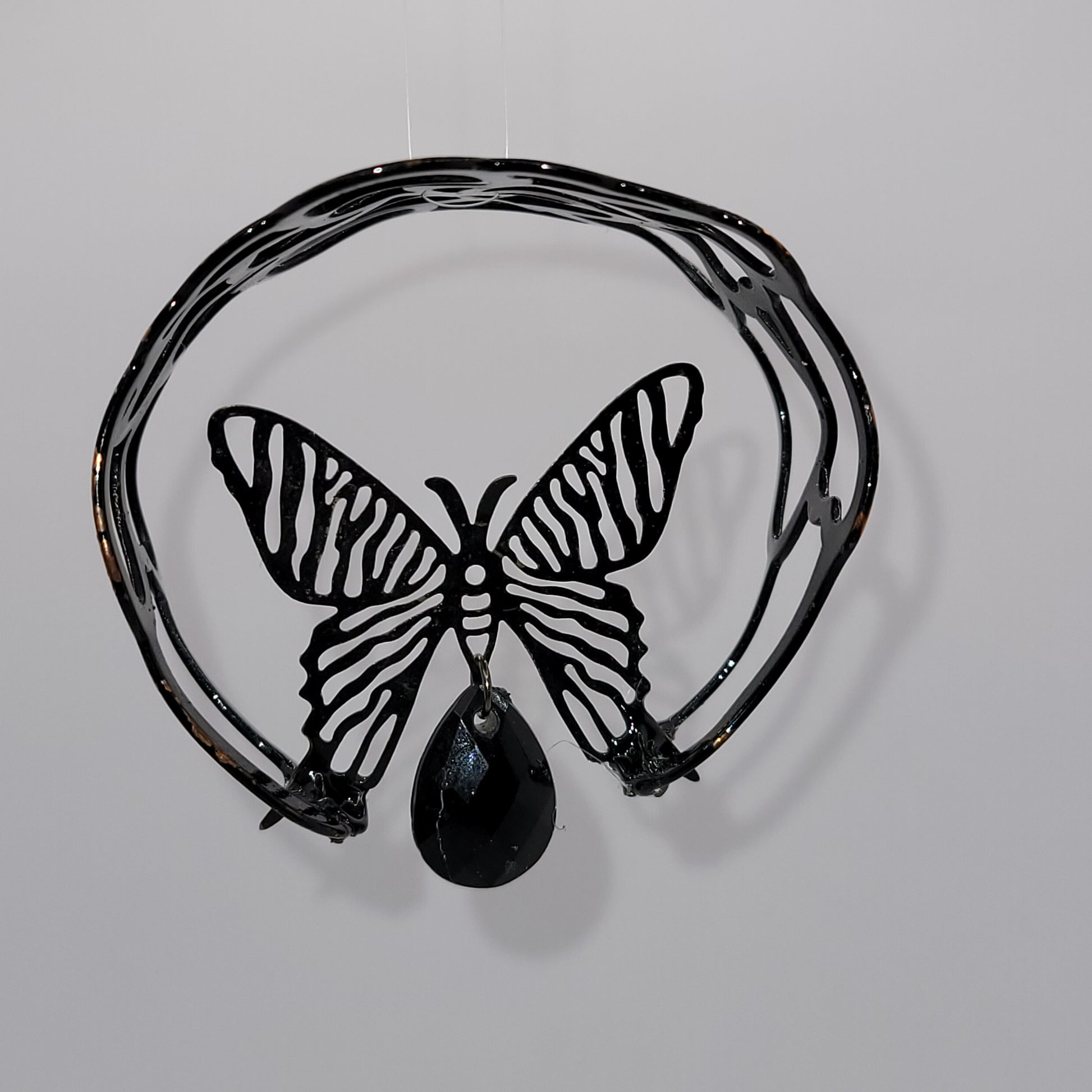 Handcrafted from Recycled Materials, Black Butterfly Ornament. Approximately 3 inches long. Repurposed with Jewelry. Upcycled Bracelets created into a new item. My way of recycling and keeping the items out of the landfill.