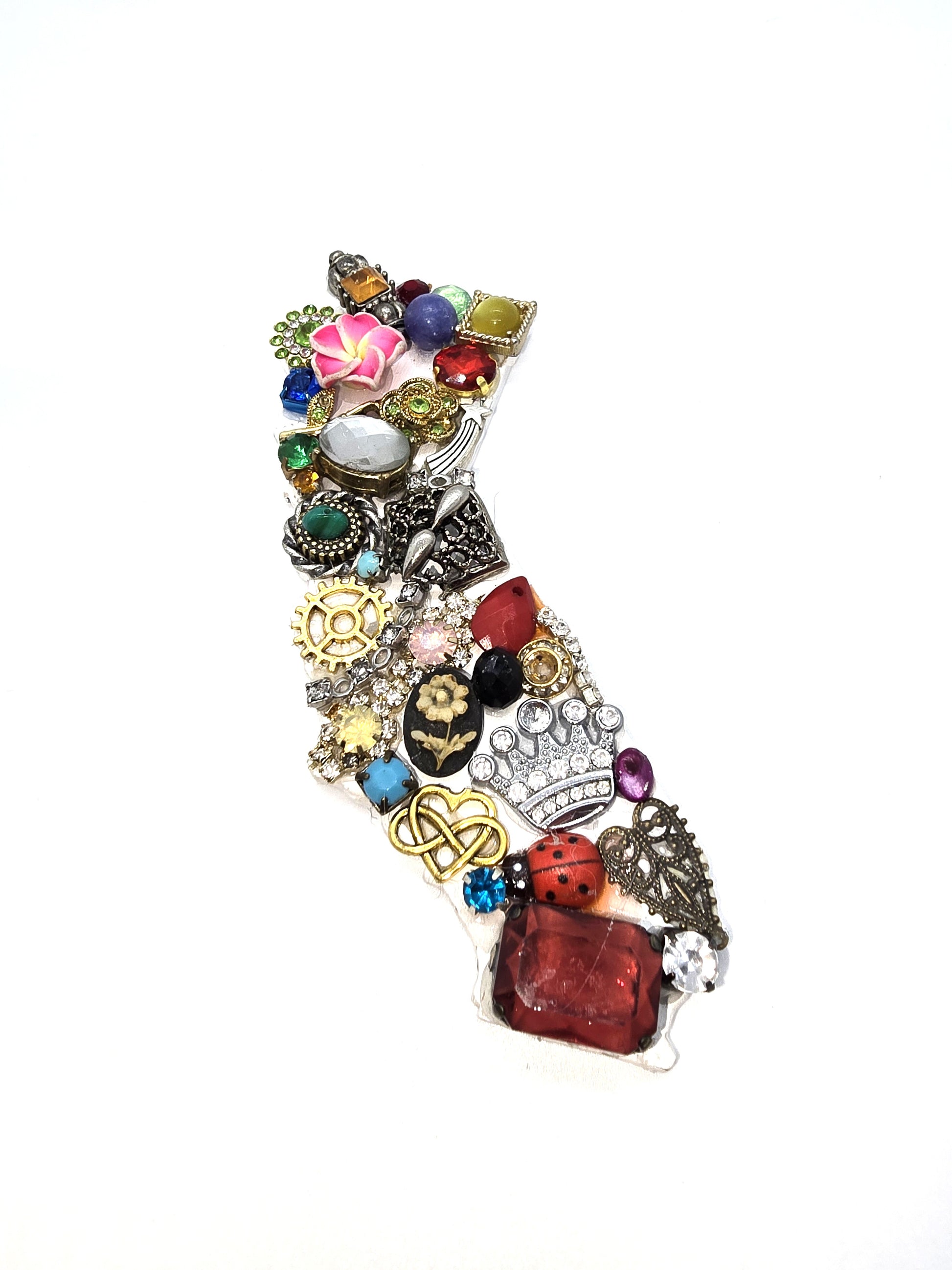 Handcrafted from recycled Materials, 5 inch California bejewled ornament