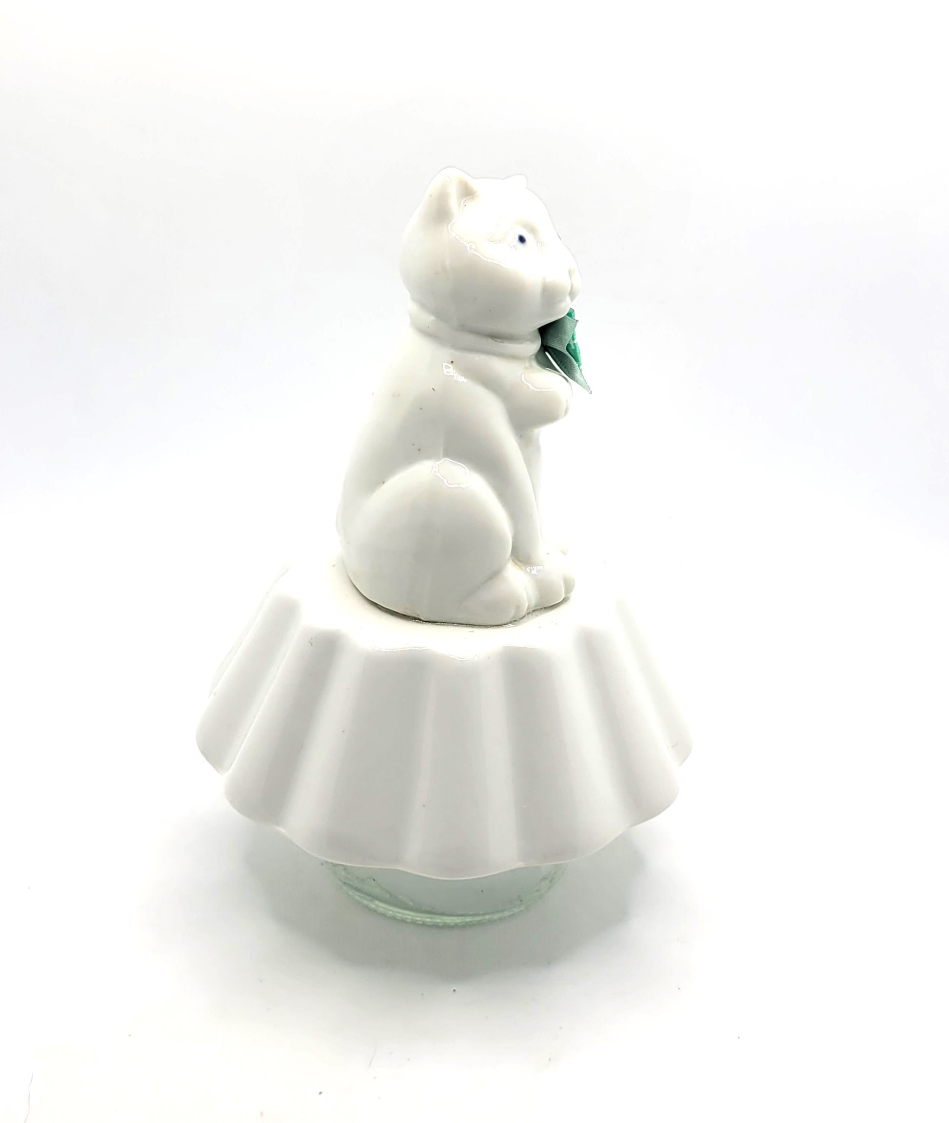 Kitty with Green Bow, OOAK Altered Art Statue, 6 inches tall